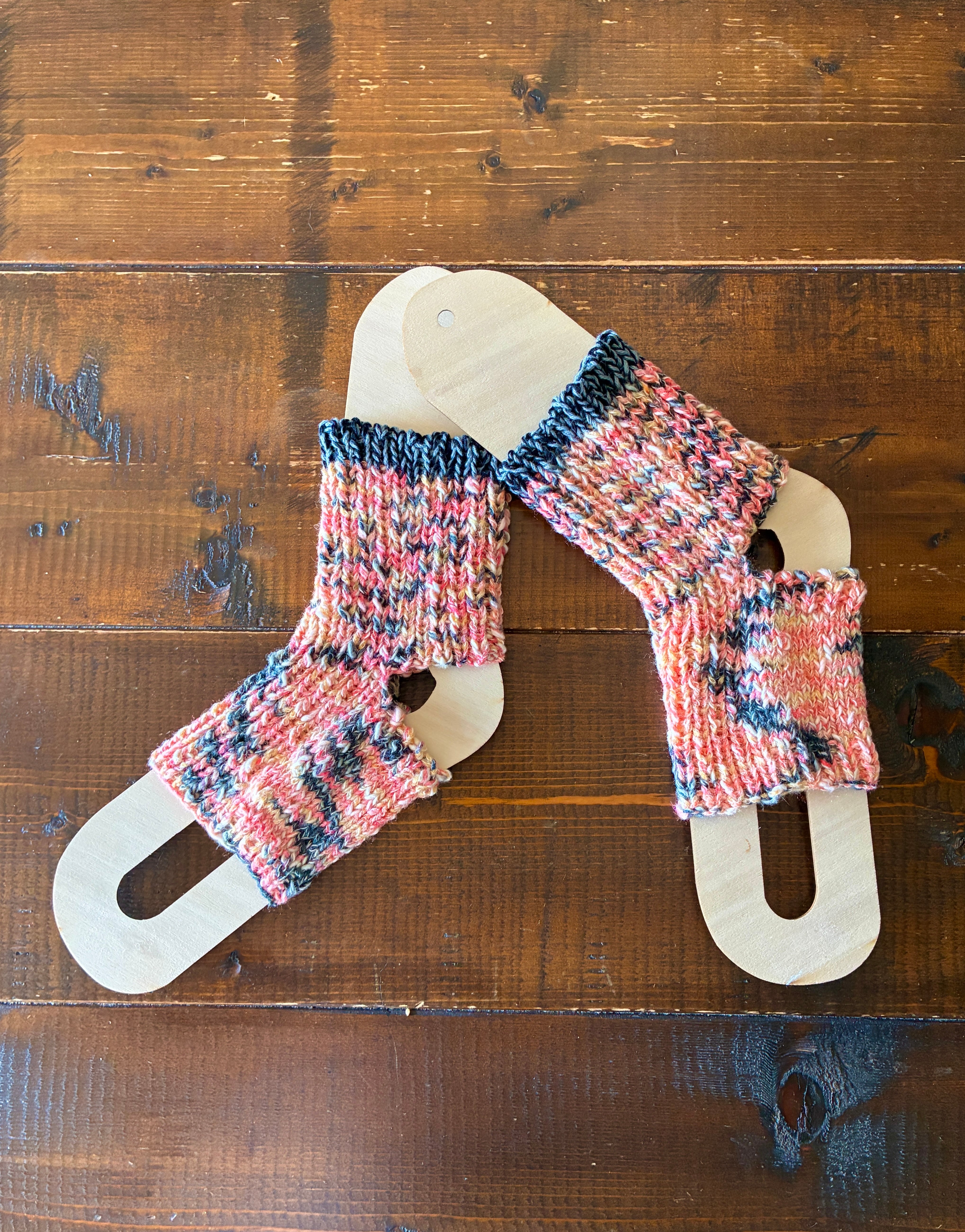 履き口を黒とグレーで編み、アクセントとしました。